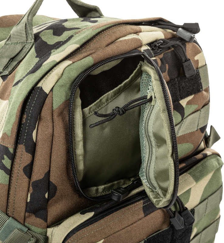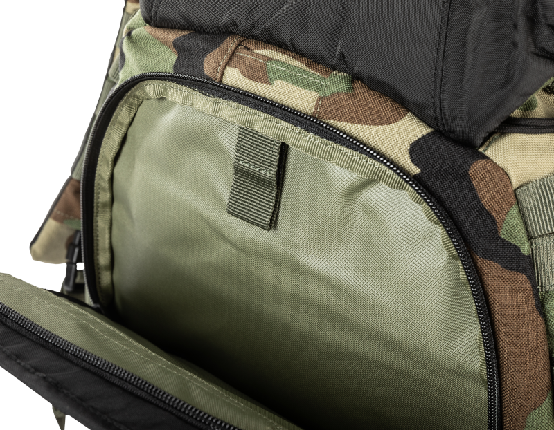ძირითადი განყოფილება ორივე მხარეს გასახსნელად — ორი კორდიანი ელვა და შიდა ბადის ჯიბეები