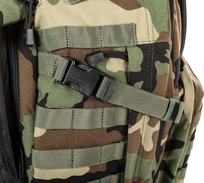 გვერდითა კომპრესიის ღვედები (ერთი ორივე მხარეს) — ამცირებს მოცულობას და ტვირთს აკრავს ზურგს, ასევე ამატებს სწრაფად ხელმისაწვდომი ტვირთის გარე სამაგრებს