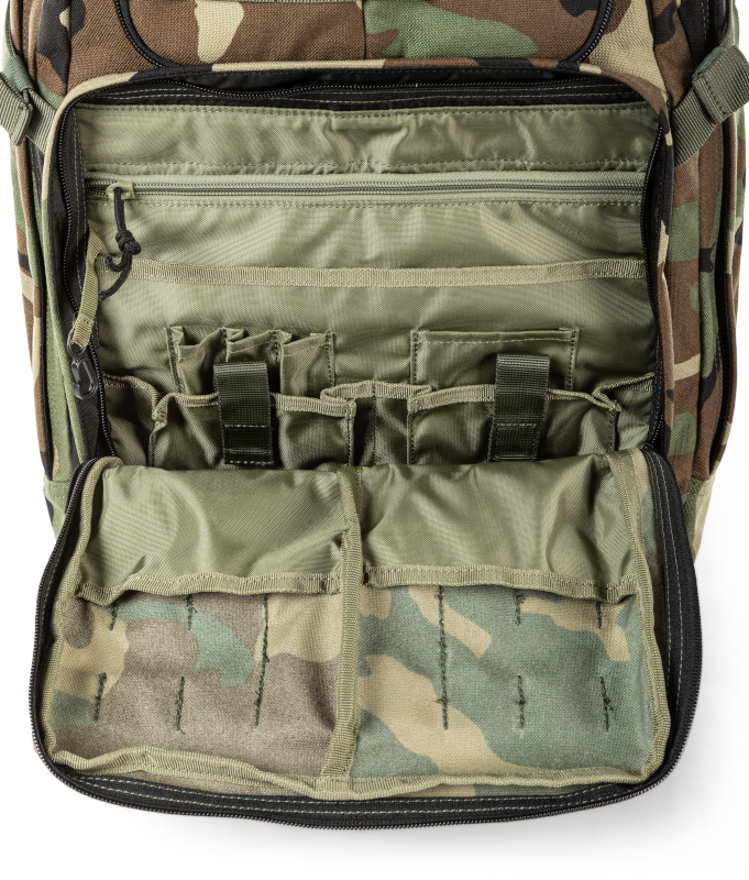 ძირითადი განყოფილება ორივე მხარეს გასახსნელად — ორი კორდიანი ელვა და შიდა ბადის ჯიბეები